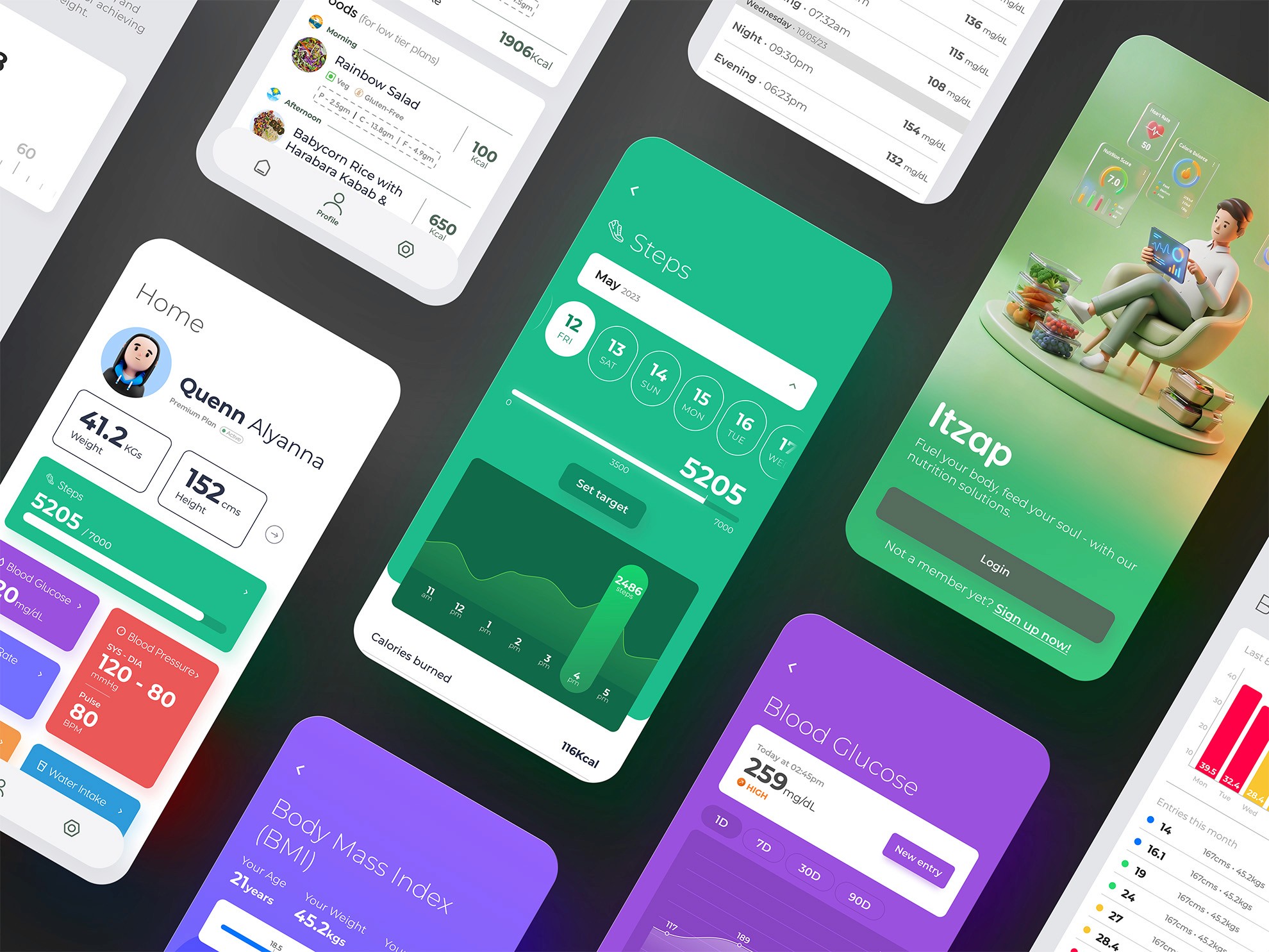 Itzap was designed as a data-centric health platform that integrates health monitoring, reporting, and nutrition services into a single mobile experience. The goal was to make complex health biometric data and workflow logic feel effortless, trustworthy, and scalable. The final product strikes a balance between clarity, performance, and user engagement at every touchpoint.